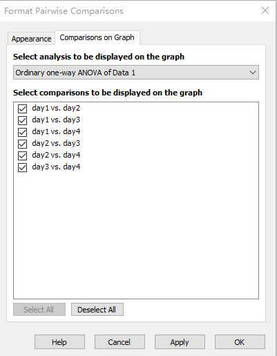 点击菜单栏 [Analysis-Analyze] ,选择 [One way ANOVA] 进行统计学分析,接着点击 [new graph] ,选择需要呈现的图形画图,如下图。