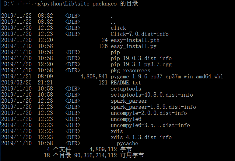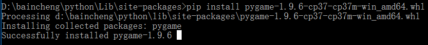 然后开始安装pip install pygame-1.9.6-cp37-cp37m-win_amd64.whl