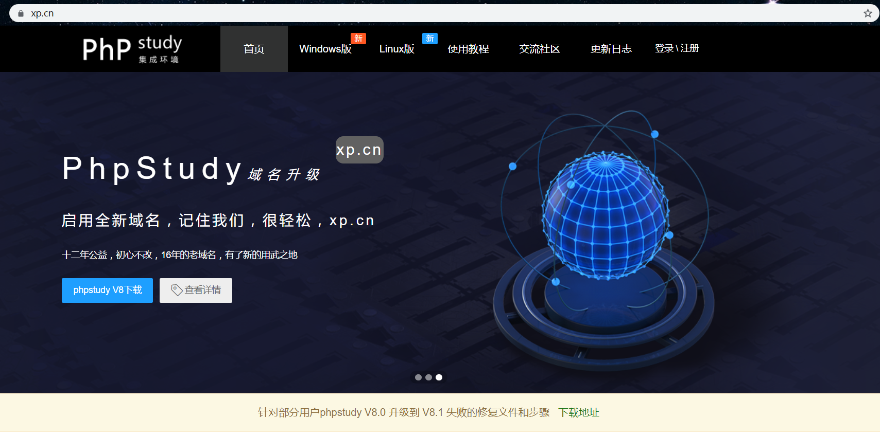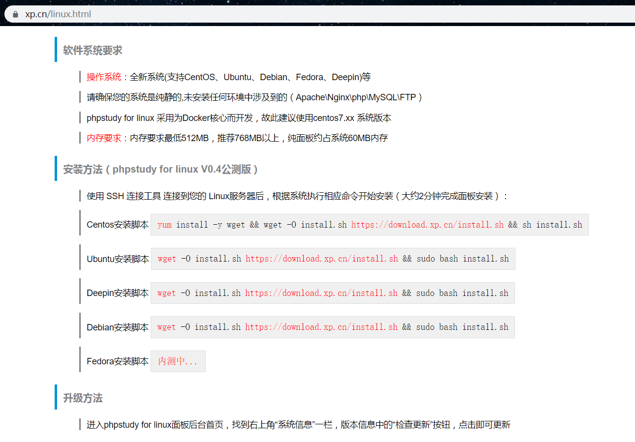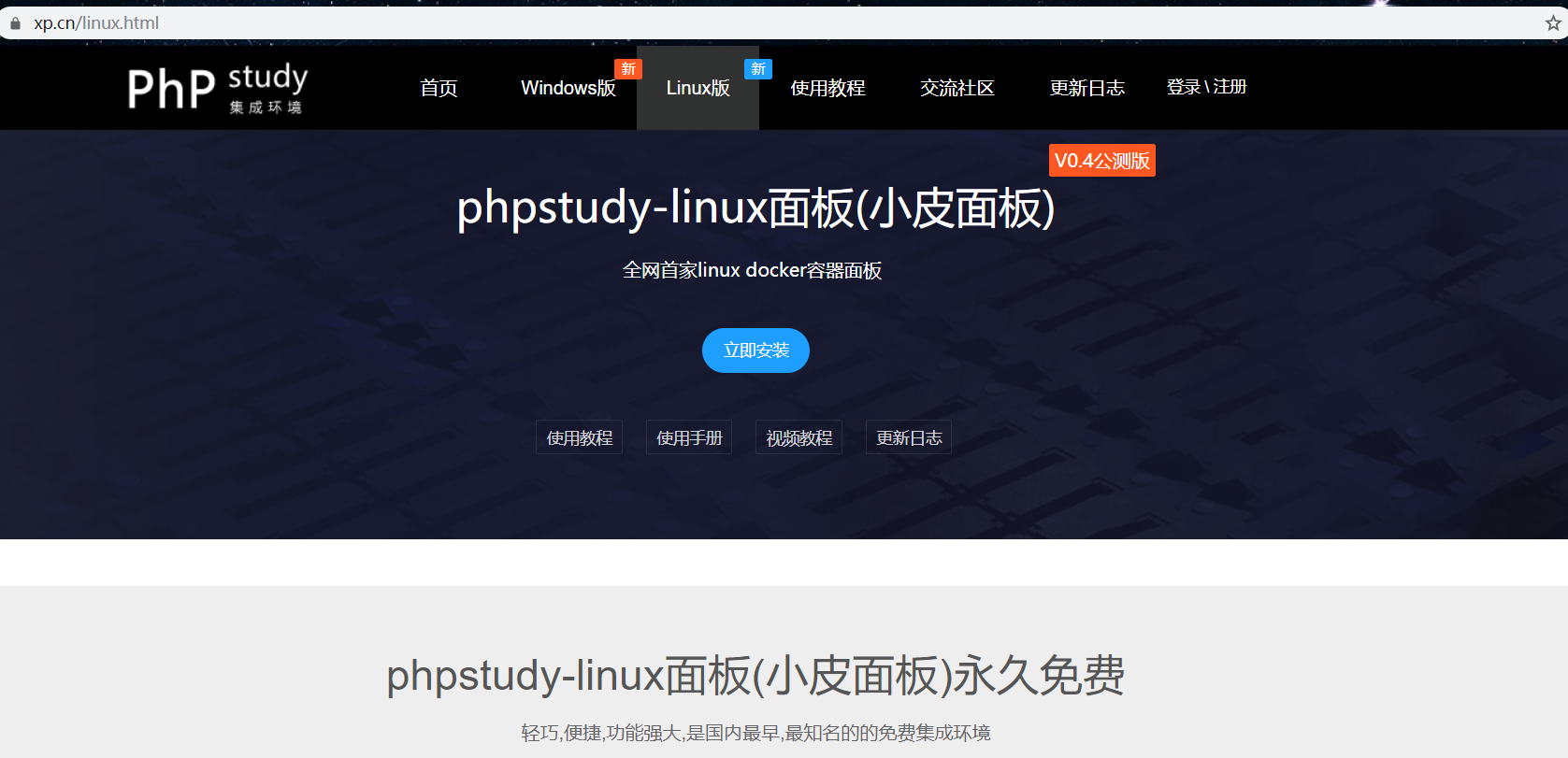 首先在一个纯净的系统下(至少没有安装过php、mysql、docker等一系列),我们先去小皮的官网xp.cn。