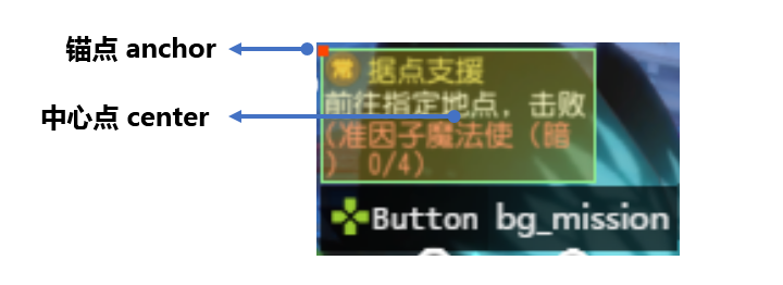 点击默认点在 anchorPoint 上,每个UI都会有一个 anchorPoint ,也就是检视器(Inspector)中UI包围盒的那个红点,大部分情况下 anchorPoint 都在UI包围盒的正中央。如果想指定其他的点击位置,可以传一个参数到 click 方法中,这个参数是一个用list或tuple表示的2维向量,其 [x, y] 值分别表示相对于包围盒左上角的偏移量,左上角为 [0, 0] ,右下角为 [1, 1] ,具体用法请见 局部坐标系 。