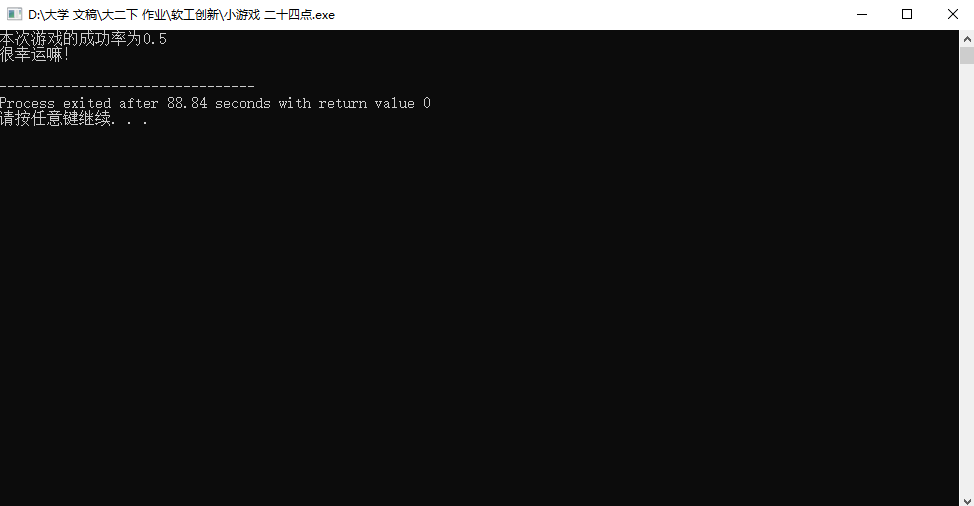 cout<<"本次游戏的成功率为"<<v<<endl; if(v>=0.5) cout<<"很幸运嘛!"<<endl;