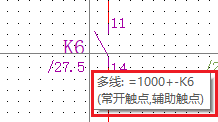 当将鼠标悬浮在部件上方时,会看到完整的标识符,下图中红色框内的内容为鼠标悬浮部件上方时,临时显示的“完整设备标识符”字符“=1000+—K6”。