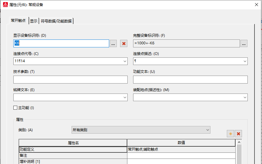 同样,双击部件的符号,打开该符号“属性(原件):常规设备”对话框,如下图所示。在“显示设备标识符”和“完整设备标识符”文本框中,可以看到显示不同的内容。