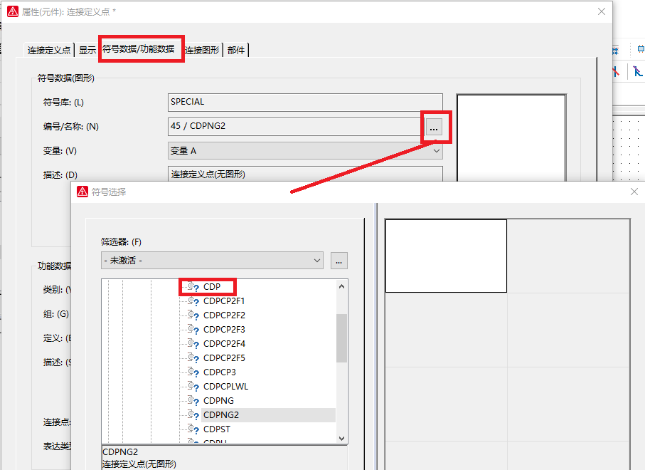 EPLAN默认设置“连接定义点”符号是CDPNG2为隐含。第一次修改时需要修改为CDP符号,设置路径:【插入】—【连接定义点】—【符号数据/功能数据】—【编号/名称】—【CDP】