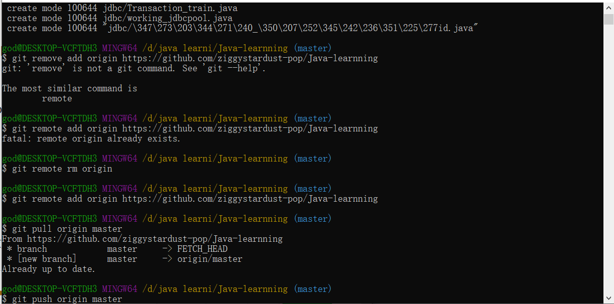 git remote add origin https://github.com/ziggystardust-pop/Java-learnning