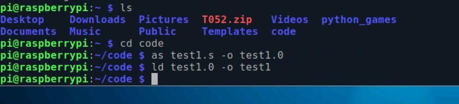 完成后ls看一下,多了一个叫code的文件夹。进入找到了test1.s的汇编文件