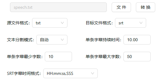 通过 txtSplitTimeStep 参数可设置转换后得到的单条字幕的持续时间。