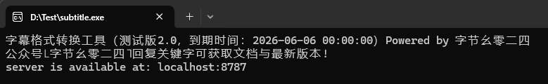 双击 subtitle.exe,此时会自动打开命令行窗口。关闭窗口则程序停止。