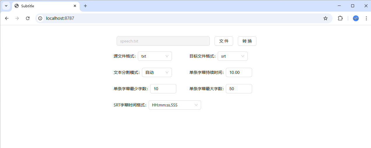 文件选择完毕,参数调整完毕,然后点击转换,浏览器会自动下载转换得到的字幕文件。