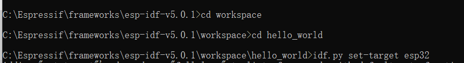 安装完成后,桌面生成快捷方式,如下图,自动打开运行ESP-IDF 5.0 CMD和ESP-IDF 5.0 PowerShell ,按照官方文档,Windows 平台工具链的标准设置 - ESP32 - — ESP-IDF 编程指南 v5.0.1 文档 (espressif.com) 我复制了Hello World 工程,打开ESP-IDF 5.0 CMD运行以下语句。成功弹出菜单框。