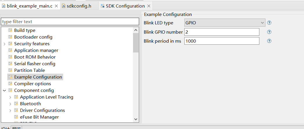 打开Espressif,新建示例代码blink,第一遍编译时有两个错误,再编译一次,显示0 Error。 接上开发板与线。点击运行。双击打开sdkconfig,成功。