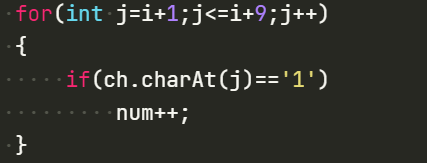 if(num%2==1&&ch.charAt(i+10)=='1')//通过num判断奇偶