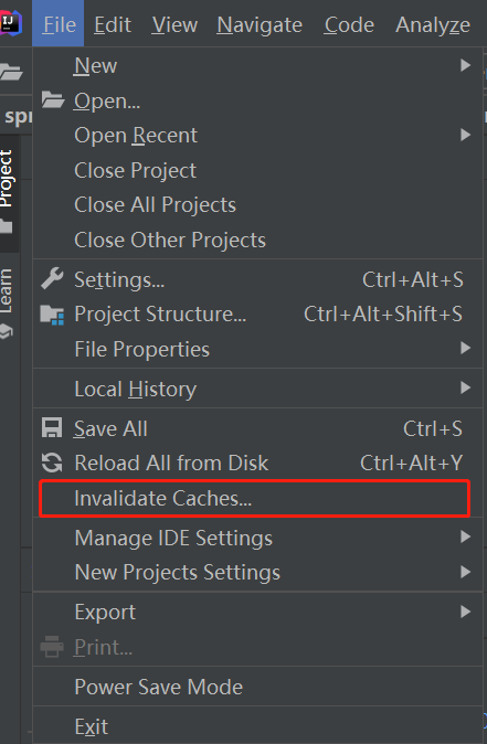- 点击File栏下的Invalidate Caches...清空缓存
