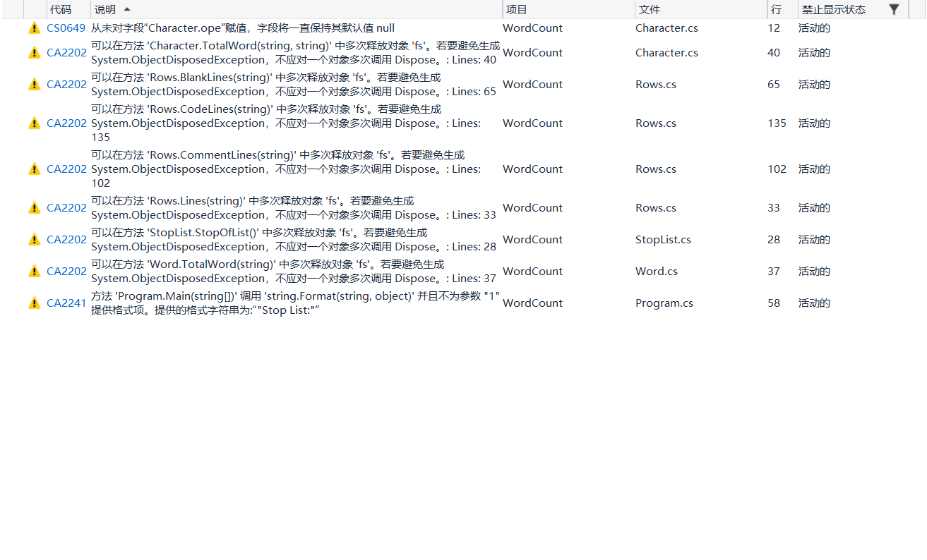我们采用的是VS自带的代码审查工具,发现了如图所示的问题,大部分还是命名规范的问题,我们又重新进行了修改。