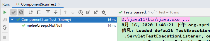 接下来写一个测试类来验证Spring是否开启了组件扫描并为我们创建了bean。我们在包Enemy下创建测试类:
