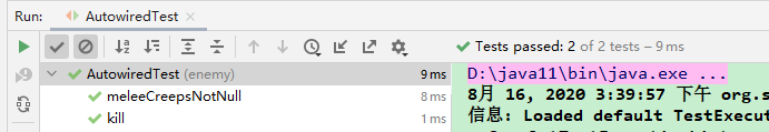 在ADHero的构造方法上加了@Autowired注解,当Spring创建ADHero bean的时候,会通过构造器传入一个可设置给Enemy类型的bean。这种方式叫构造器注入。在这个例子中,传入的bean为meleeCreeps。