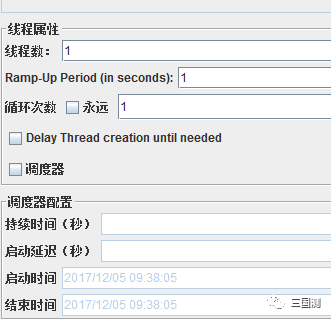 3、循环次数为不循环,调度器不设置(如图)
