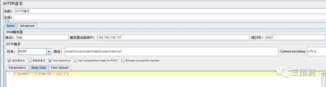 d、Request报文:填入Body Data