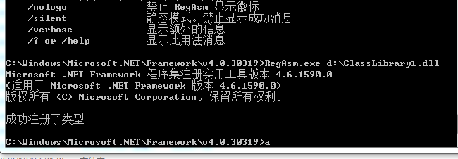 需要注意的一点是在32位系统上要使用C:\windows\Microsoft.NET\Framework\v4.0.30319\RegAsm.exe