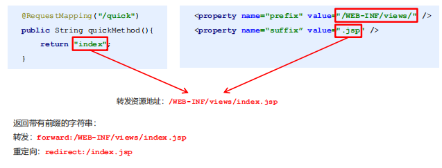 1 可以在mvc配置文件中配置跳转页面路径的前后缀 以及重定向和转发的写法