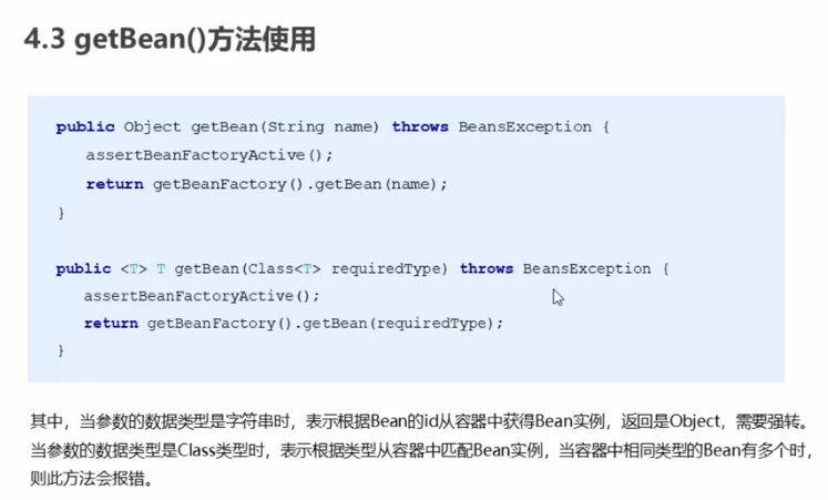 如果某一类型的Bean存在多个是,通过id获取;如果只有一个,则可以通过类名的方式获取