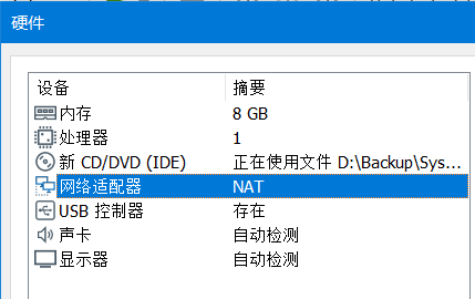 5,选择自定义硬件 -> 网络适配器选择NAT模式(其他的根据个人情况) -> 点击关闭;完成