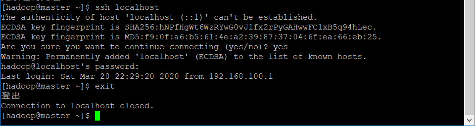 [hadoop@master .ssh]$ cat id_rsa.pub >> authorized_keys