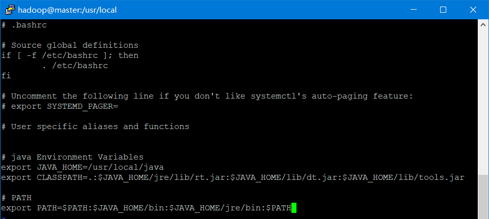 [hadoop@master hadoop]$ vi ~/.bashrc