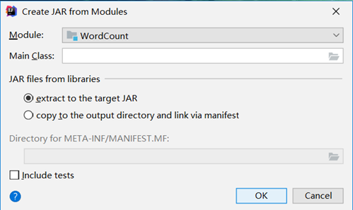 1,简单的hadoop项目(Maven)在Create JAR from Modules页面中,最简单的方式为Main Class为空,选择extract to the target JAR。这样不会指定主类,不会生成MANIFEST.MF文件。