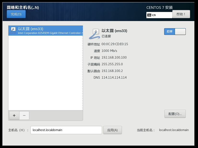 1,直接打开以太网,DHCP 起作用,将其 IP地址池范围的第一个 ip地址分配给 Centos。【网络连接成功】