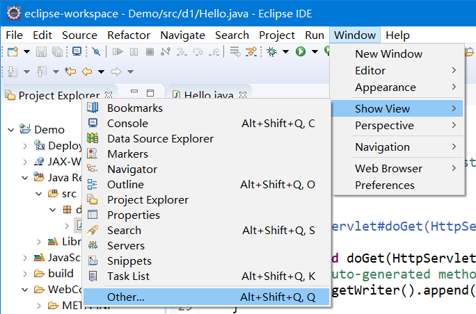 调出 Servers选项卡,Window -> Show View -> Other