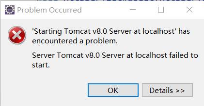 (1)Server Tomcat v8.0 Server at localhost failed to start