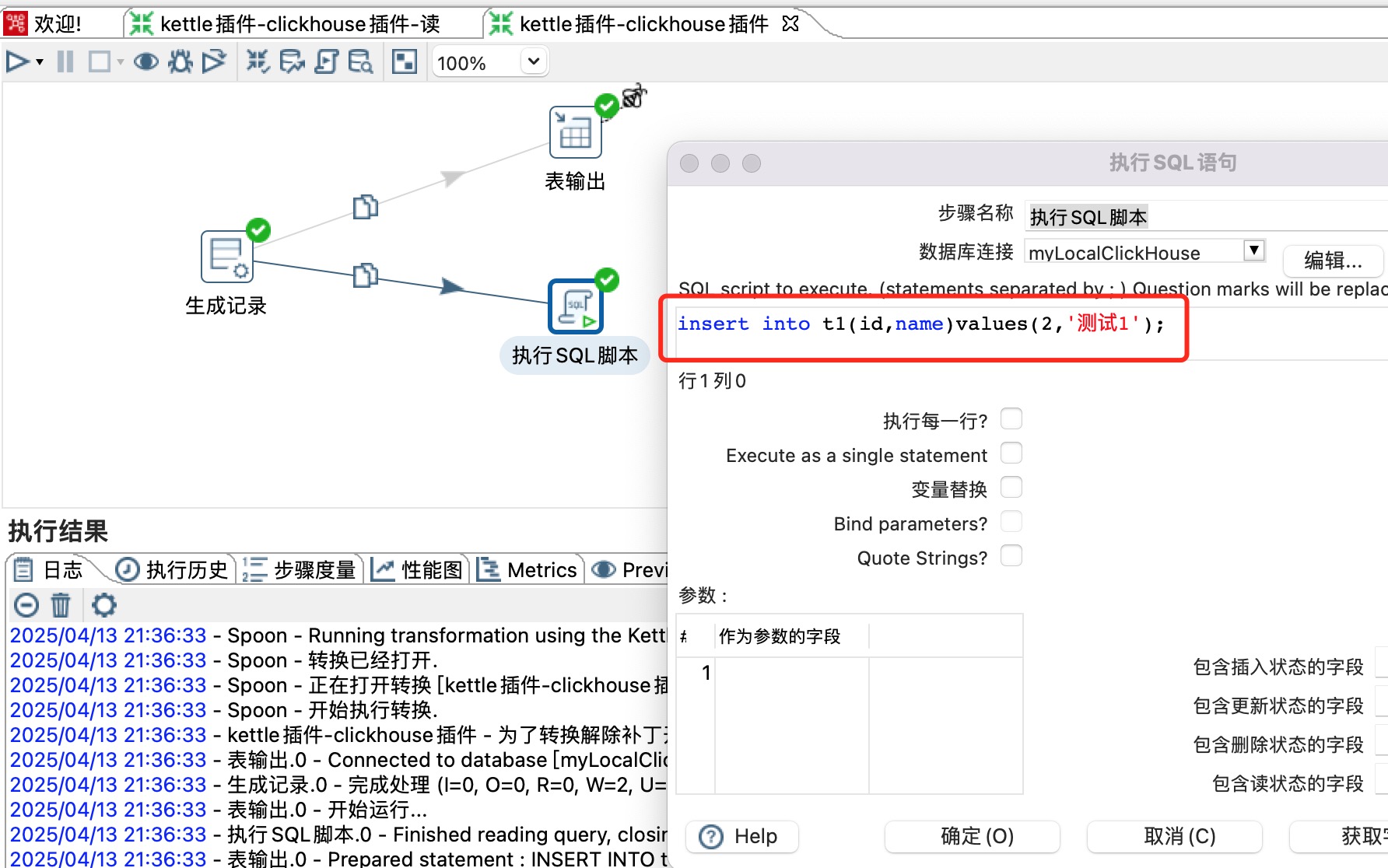 9、换成执行SQL脚本步骤继续寻找问题,好神奇这种方式却正常,如下图所示: