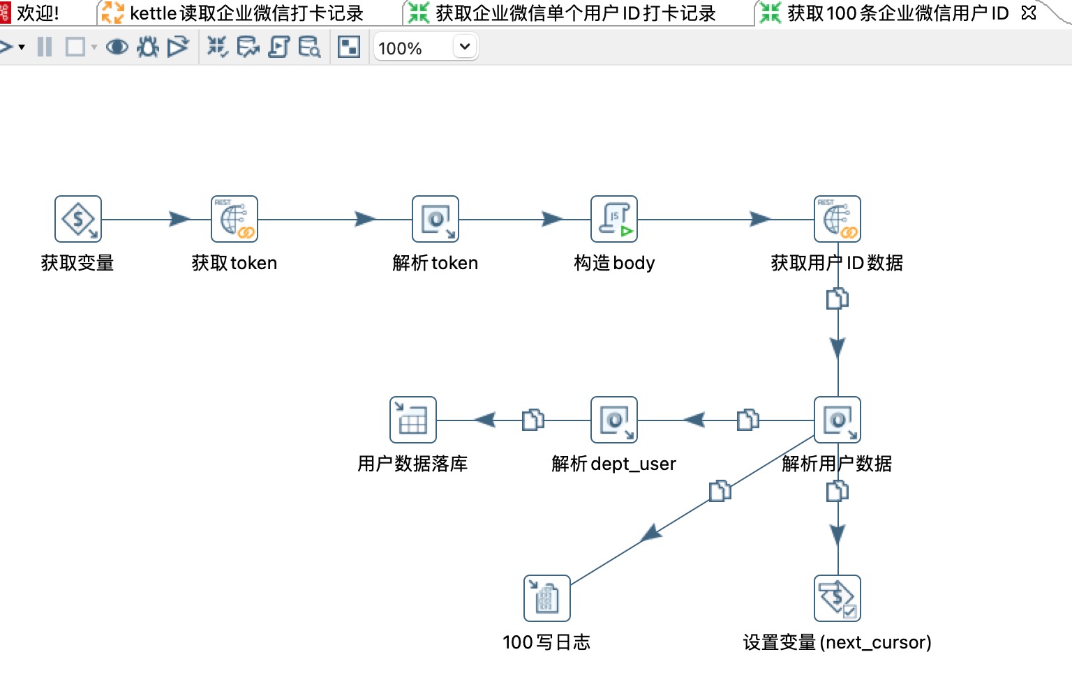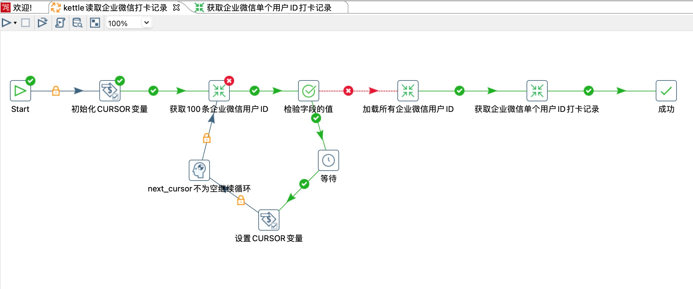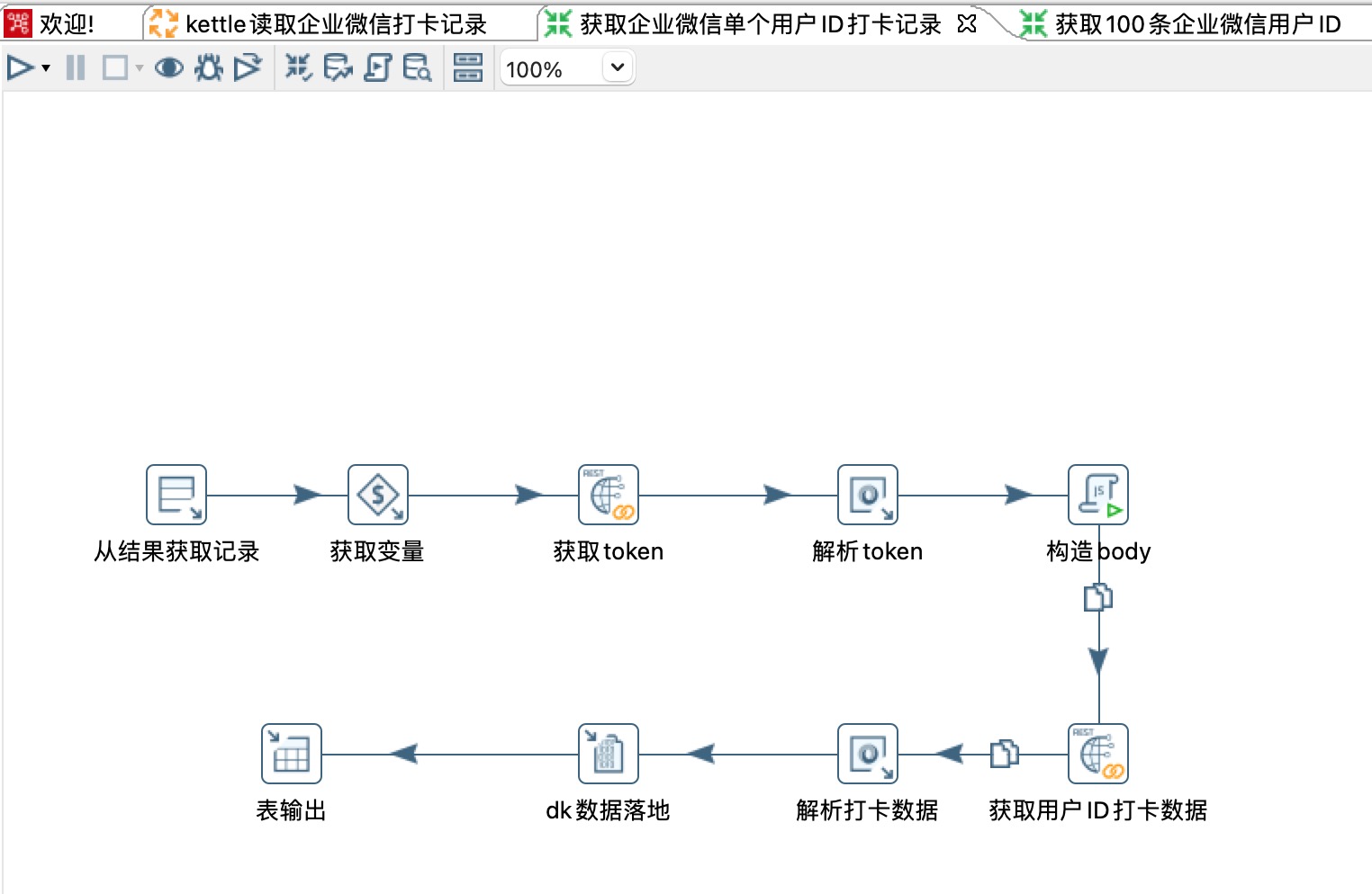 通过kettle原生的步骤可以实现kettle获取企业微信打卡记录,但是没有一定的功底,很难实现。后续我们会推出企业微信插件,可以很方便的实现此类功能。