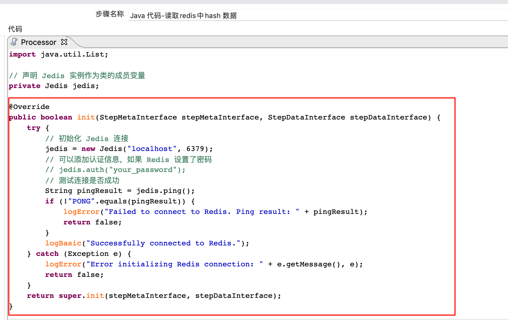 这里重点介绍下Java代码步骤如何读取redis,总共分三个步骤,初始化redis链接、读取hash数据循环输出、销毁redis链接。