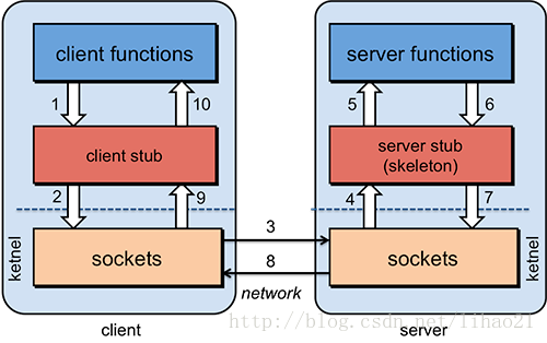 7、服务器桩将结果打包成一个消息,然后调用本地操作系统;