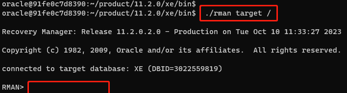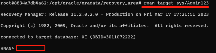rman target sys/Admin123