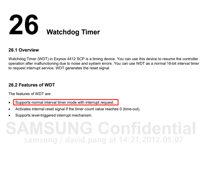 Watch Dot Timer即看门狗定时器,其主要作用是当发生软件故障时可产生复位信号使SOC复位,其本质是一个计数器。