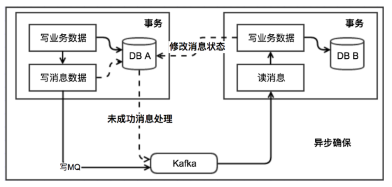 - 事务发起方,建一个消息表,在存储业务数据的时,也往消息表中记录,这两个操作是在一个事务里提交,