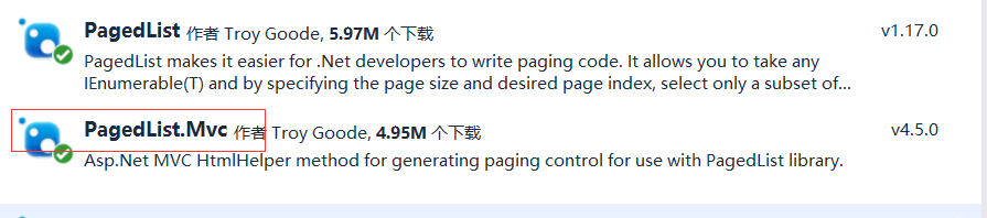 Nuget 引入PagedList.mvc,他会自动将Pagedlist也引入