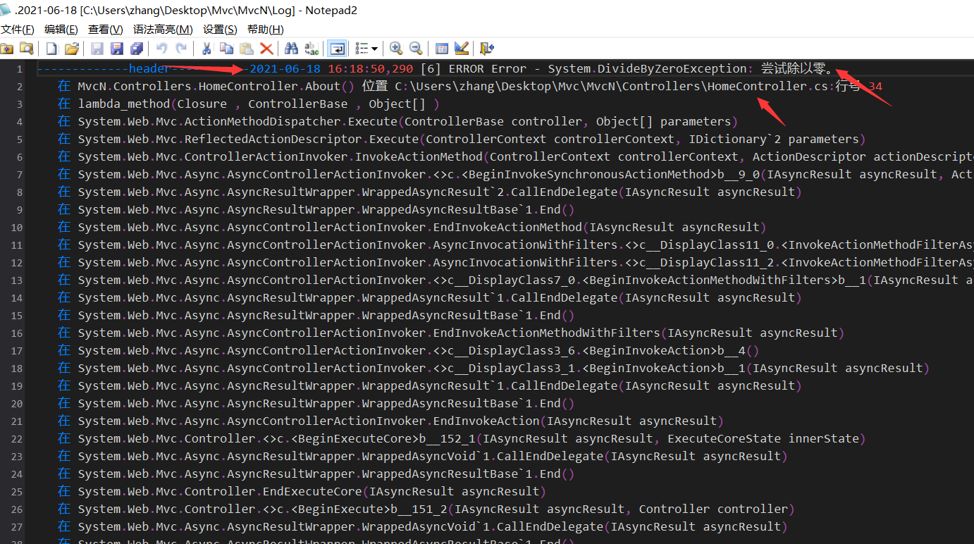 我们在添加一个MyErrorAttribute.cs 用来处理异常并记录日志 它继承全局异常类HandleErrorAttribute