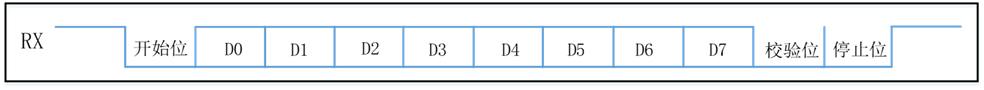 上图为串口接收时序图(一帧),串口接收只需要一条数据线RX,具体流程如下: