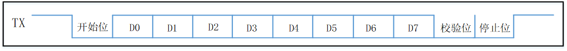 - 当收到发送指令后,拉低线路的一个数据位,然后开始发送数据,按低位到高位依次发送,数据发送完成后,接着发送奇偶校验位和停止位(停止位为高电平),一帧数据发送完成。