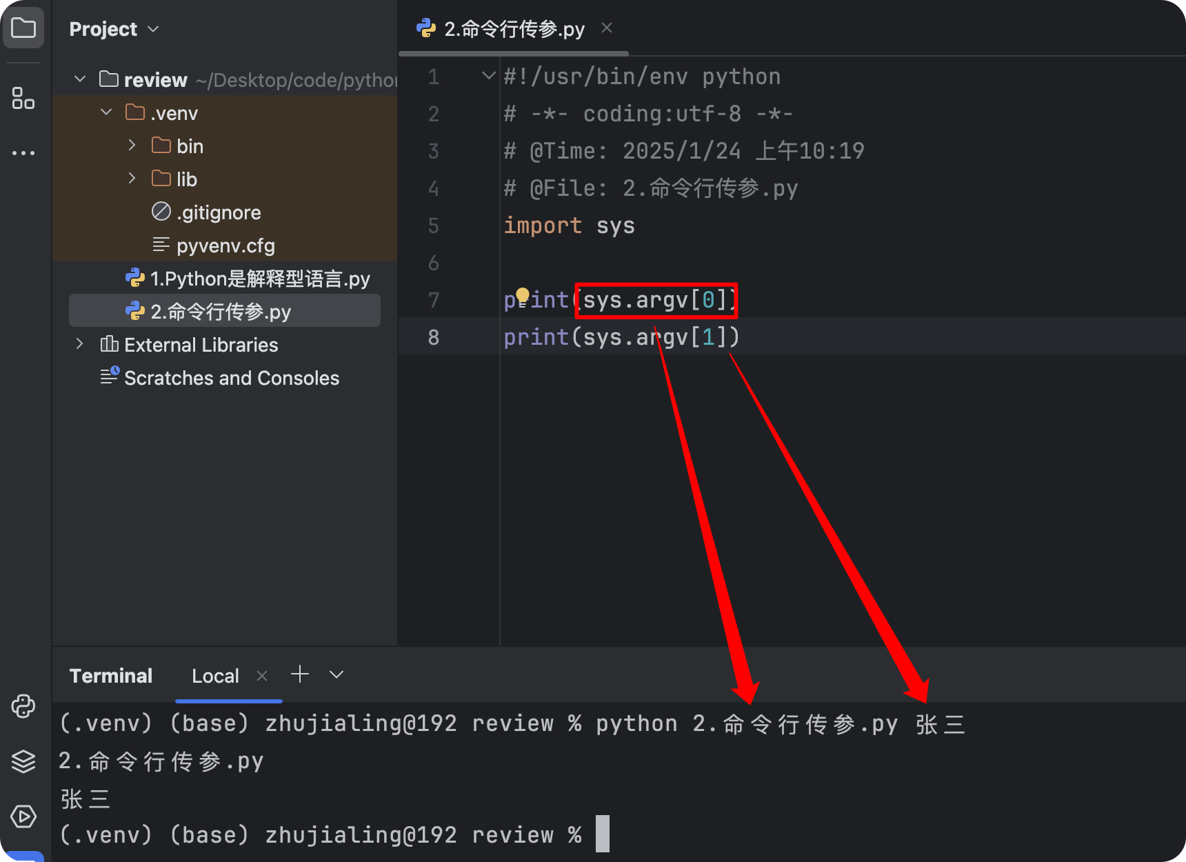 import sys print(sys.argv[0]) print(sys.argv[1])