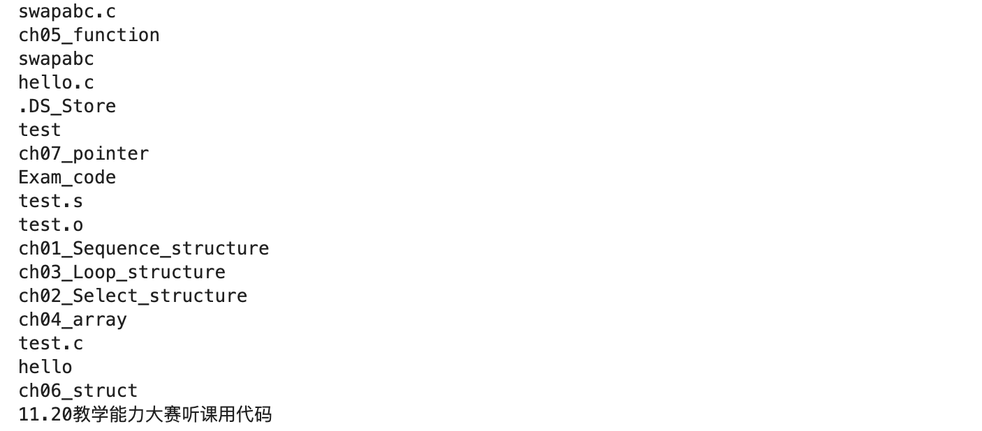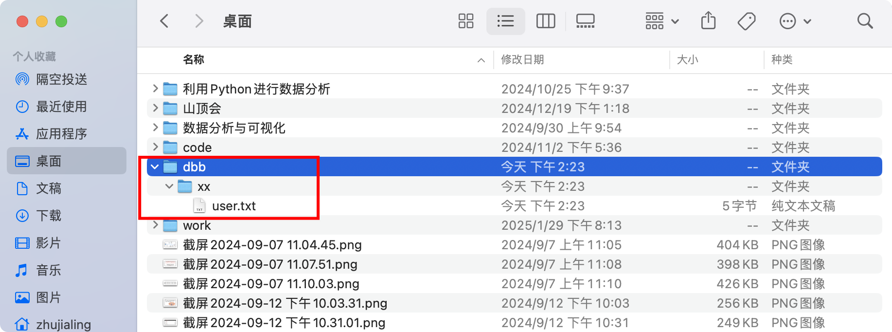 import os result = os.listdir(r"/Users/zhujialing/Desktop/code/C") for path in result: print(path)![]()