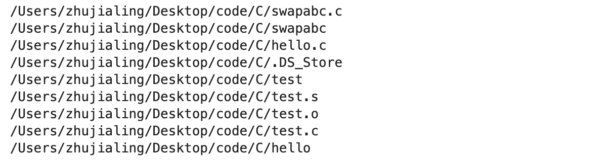 # 练习1:打印当前目录下所有文件的绝对路径 import os result = os.walk(r'/Users/zhujialing/Desktop/code/C') for a, b, c in result: for item in c: path = os.path.join(a, item) print(path) break # 遍历完第1组a,b,c后接着强行退出,否则会输出后续子文件的路径![]()