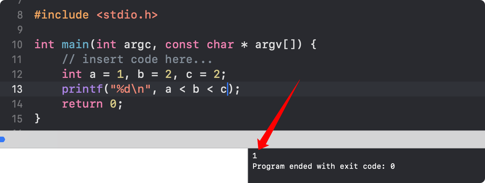 a、b、c的值为1 2 2,分析关系表达式a < b < c的执行结果