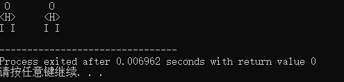 1 #include <stdio.h> 2 int main() 3 { 4 printf(" O \t O \n"); 5 printf("<H>\t<H>\n"); 6 printf("I I\tI I\n"); 7 return 0; 8 }