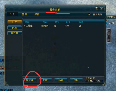4 填写指定好友 点击添加 成功回社会关系界面 再关闭 回到主界面 完毕