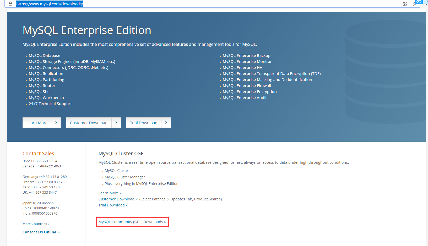 下载mysql,下载地址https://www.mysql.com/downloads/,选择社区版